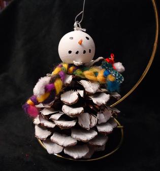 #203. Pinecone snowman with wreath. $5.00 Shipping Additional