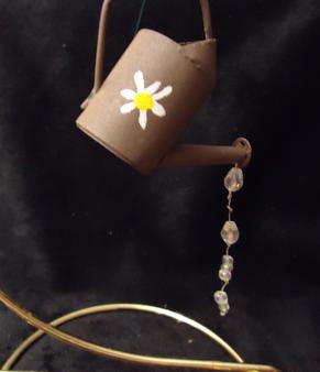 #198. Short watering can with white flower and water drops. 1 1/2". $4.00 Shipping Additional