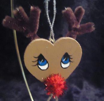 #780. Wood heart shaped reindeer ornament. 1 1/4". $2.50 Shipping Additional