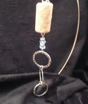 #423. Wine cork with blue bead and silver metal chain tassel. $4.00 Shipping Additional