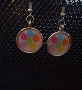 #445. Round framed metal with Easter eggs earrings. $8.00 Shipping Additional