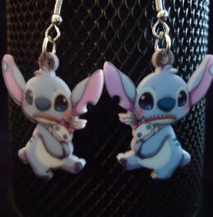 #290. Lucite Stitch holding stuffed animal earrings. $8.00 Shipping Additional