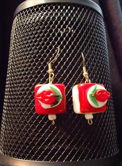 #600. Strawberry shortcake earrings. $8.00 Shipping Additional