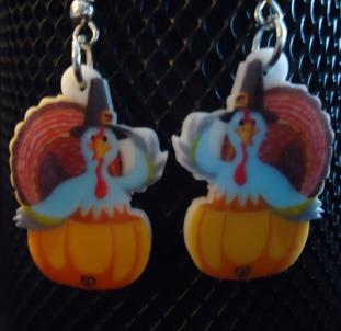 #311. Lucite turkey in pumpkin earrings. $8.00 Shipping Additional
