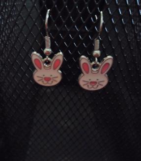 #454. Metal white Easter bunny face earrings. $8.00 Shipping Additional