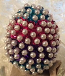 #10. Large 4" egg with silver and gold with white pins. $9.00 Shipping Additional