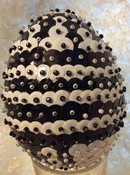 #1. Large 4" egg with black and white stripes. $9.00 Shipping Additional